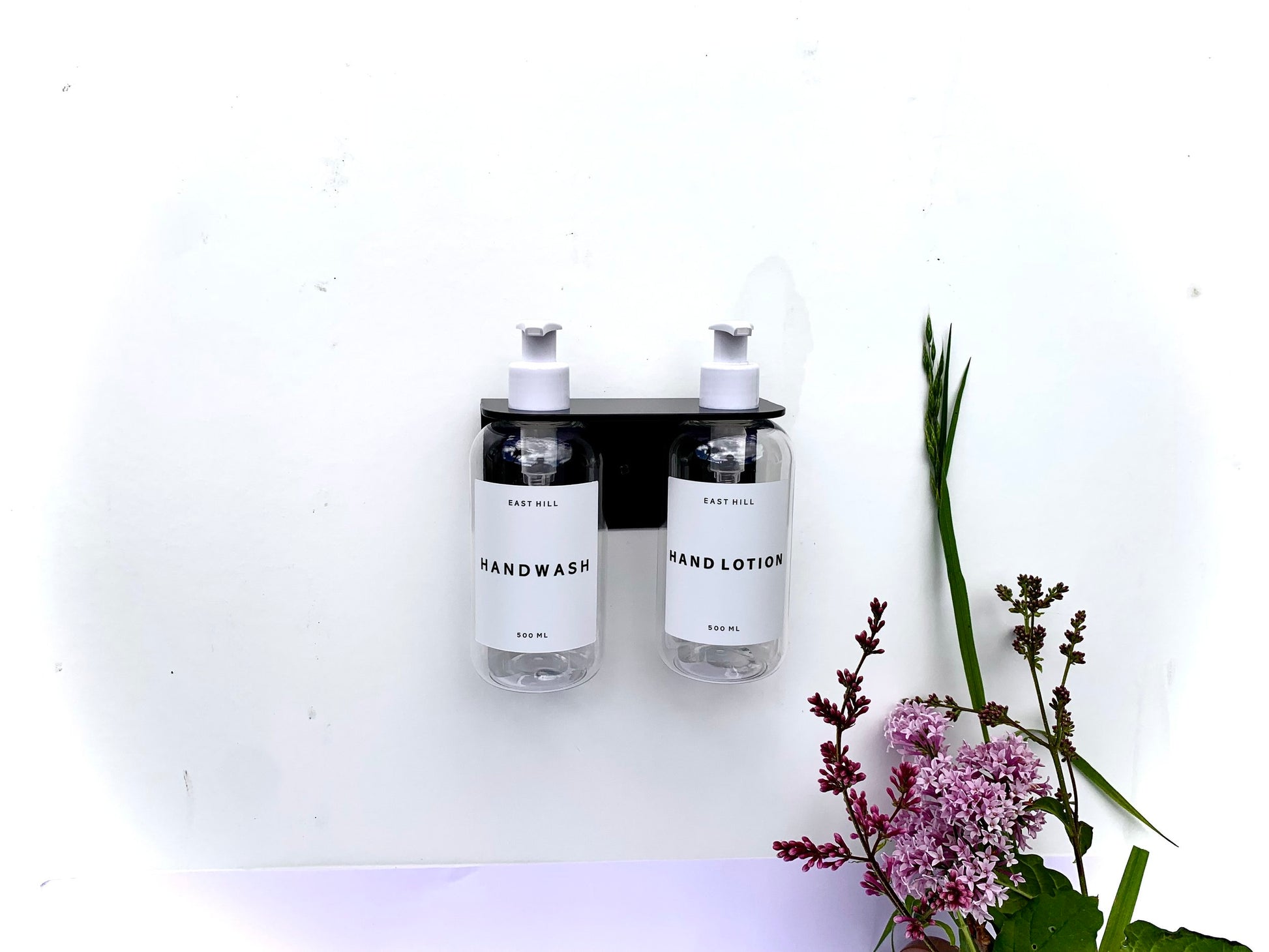 Our Edition 1 brackets are designed to pair seamlessly with our clear plastic bottles, available in 300ml and 500ml sizes, each featuring a clean white pump top. Elevate your space with a clutter-free, sophisticated solution.